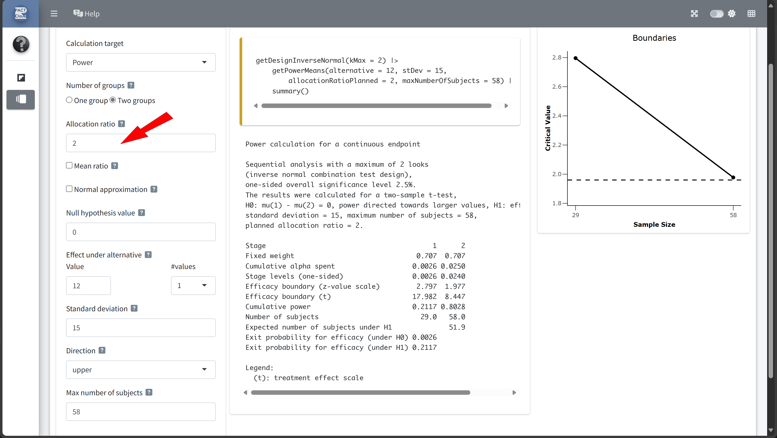 allocationRatioPlanned = 2 # Allocation ratio 2:1